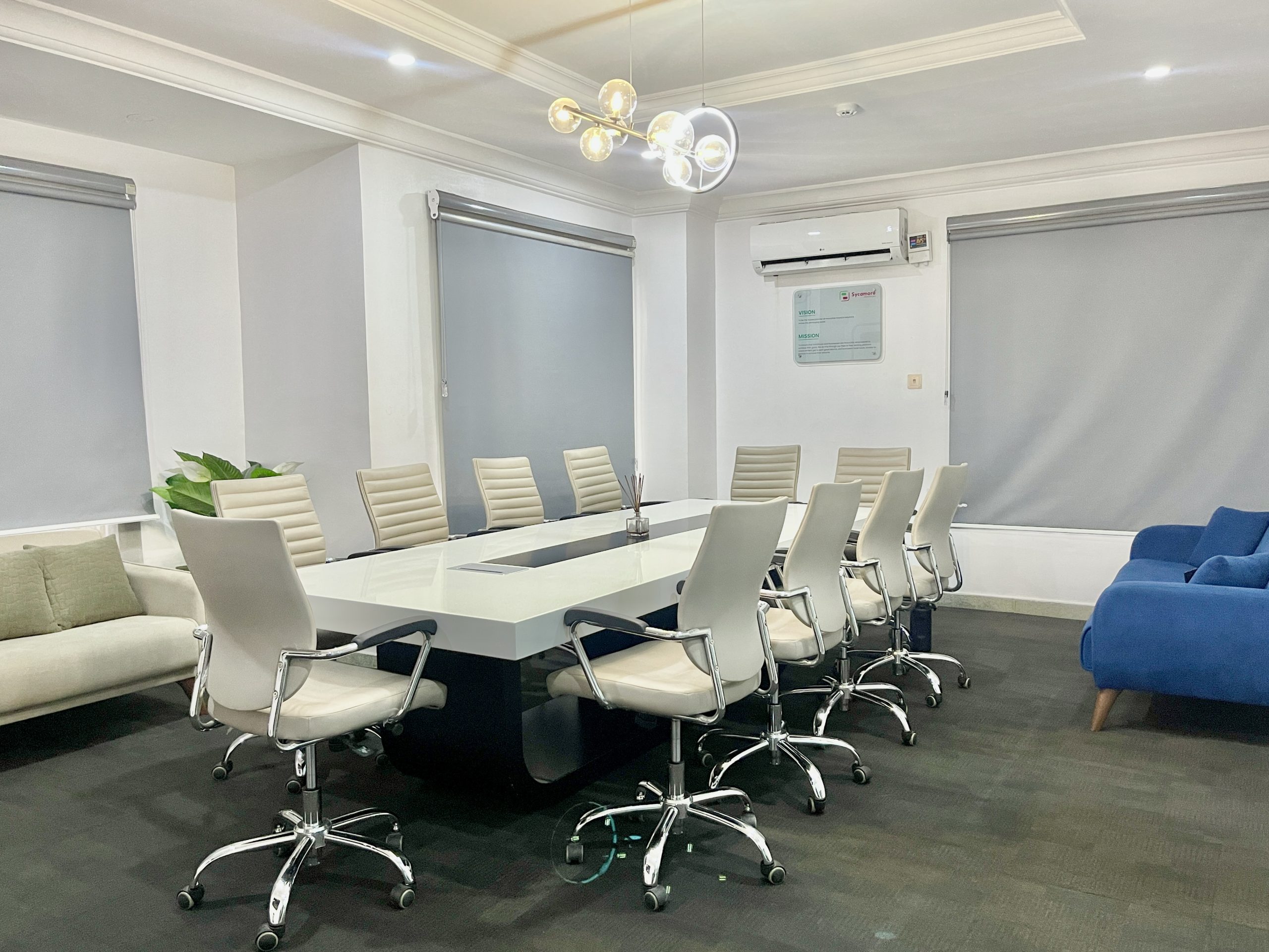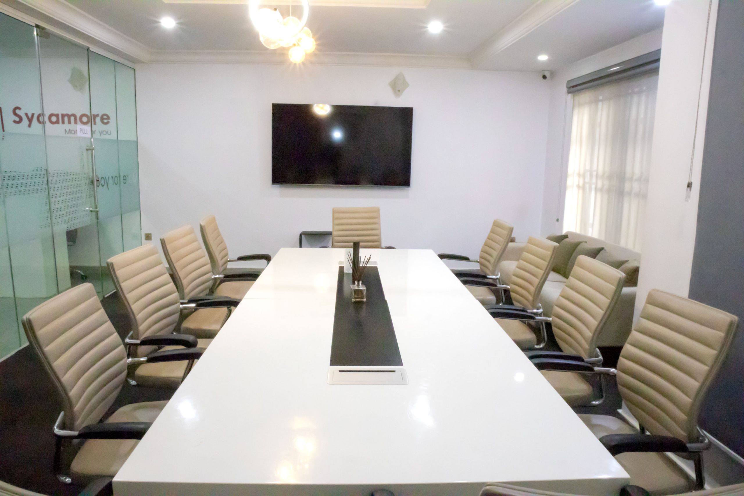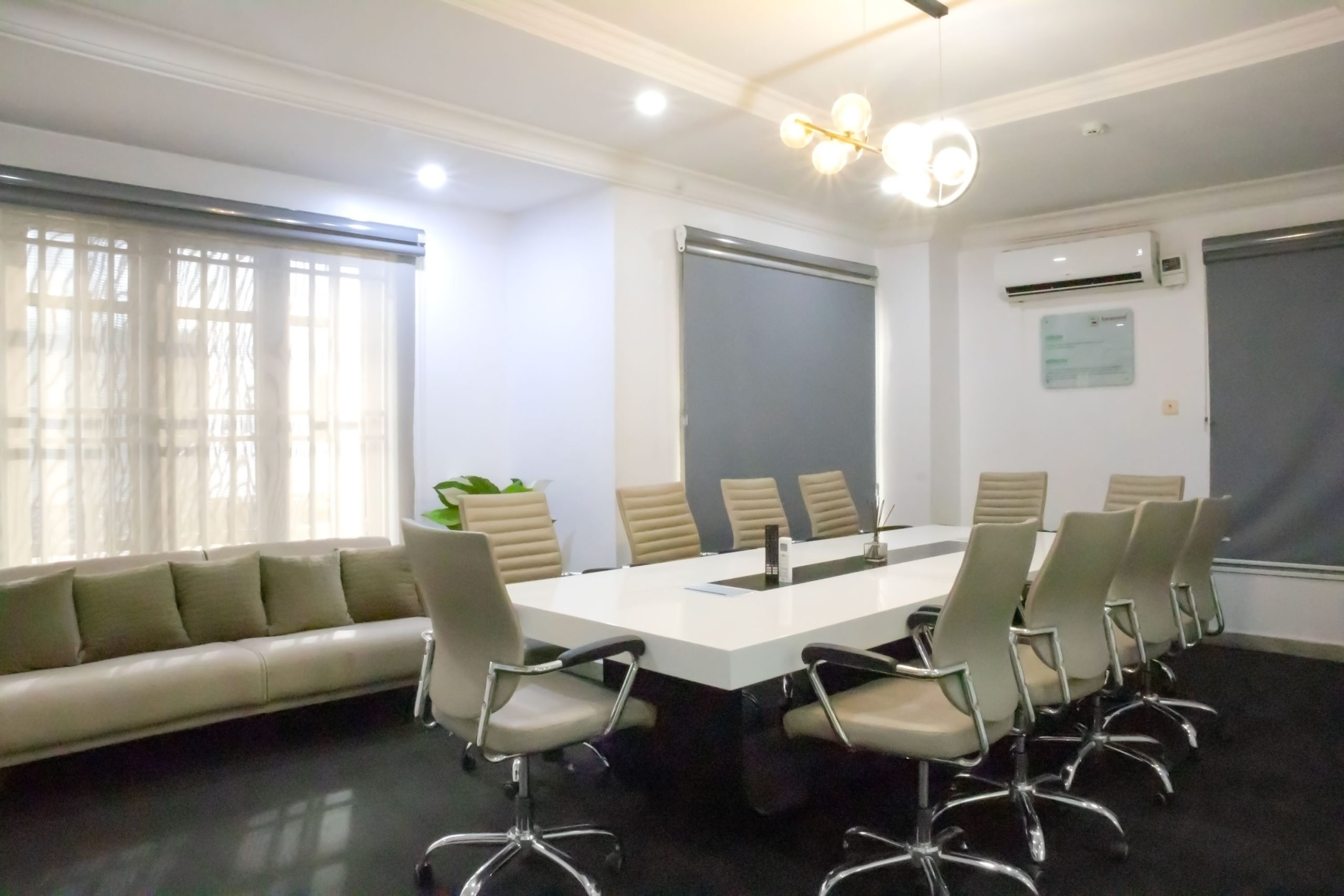 Our boardroom offers the perfect blend of comfort and functionality. With 15 sleek, comfortable chairs around a spacious table, a high-definition display screen for seamless presentations, and cozy couches for relaxed brainstorming sessions, this space is designed to foster productivity and creativity in every meeting.